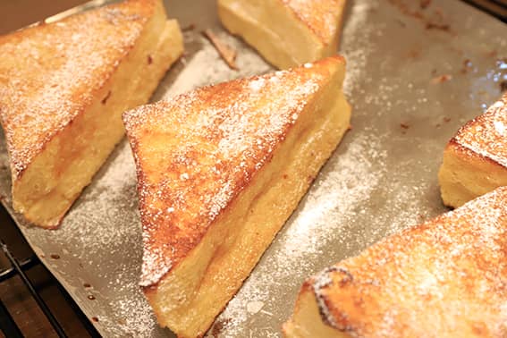 卵とミルクで仕込んだフレンチ液にたっぷりつけ込んで焼きました。